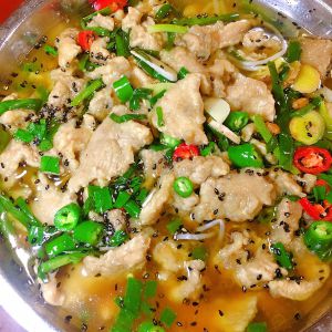 另起锅,热油,倒入葱姜蒜翻炒加入1大勺豆瓣酱,翻炒两下,倒入开水,加入生抽,盐,糖,胡椒粉,倒入肉片,小火煮2分钟