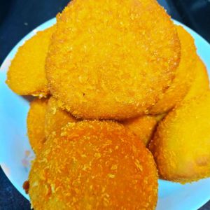 把粉团分成相同剂子压圆均匀裹上面包糖