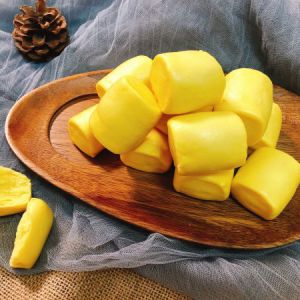 蒸熟的南瓜趁热用刀叉压成泥,晾凉备用