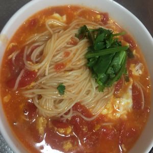 煮熟将打散的鸡蛋撒入,滴入几滴香油盛出撒入香菜即可