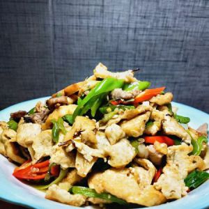 热油,先把葱白,蒜,姜爆炒香,再加入肉片爆炒