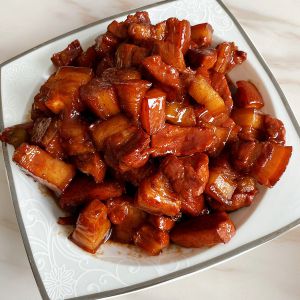 加入腐乳汁,生抽老抽白酒翻炒入味后加入开水小火炖50分钟