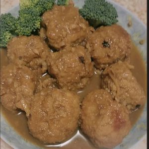 终于最后一步啦,狮子头捞出,留点汤汁,加入水淀粉,勾芡一下,淋到丸子上(我也给忘记啦,直接就都盛出来了,哈哈哈)