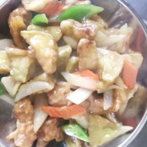 马上着急忙慌的下入所有的食材茄子和配菜,一起翻炒两下,保证茄子都沾上汤汁芡了就可以出锅了。不要翻炒时间长了,那样茄子就不脆了。