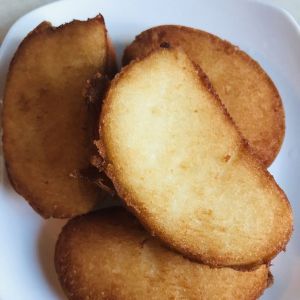 锅中倒入油,7成热,馒头片下锅炸一遍