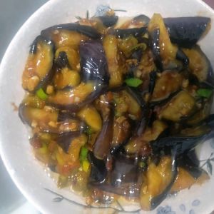 挤干水分,放入2勺淀粉,用手抓匀然后热锅冷油,放入抓好的茄子,翻炒2到3分钟,放入蒜末,姜末,葱末,再放入豆瓣酱,香醋,蚝油,生抽,糖少许,继续翻炒。