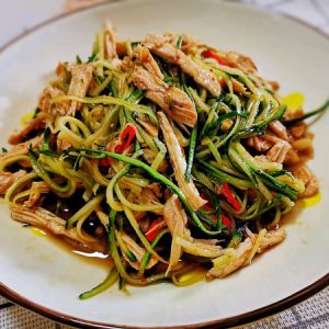 鸡胸肉加生姜片,料酒,煮熟,凉透