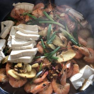 浇汤汁:把之前调好的汤汁浇上,我用的锅是多用的电热锅,可以做火锅的那种锅。