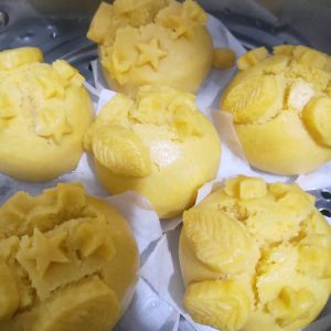 做好造型用保鲜膜盖好发酵30分钟,等到面团是原来的1.5倍大的时候就可以上锅蒸了