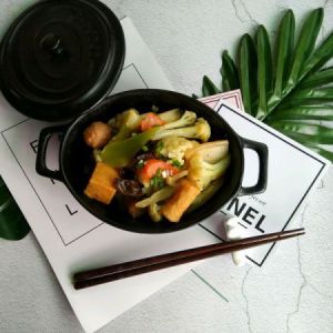 放入贡丸、甜不辣继续翻炒,加入适量耗油、酱油、糖翻炒均匀。最后,加入勾芡好的淀粉液收汁即可。