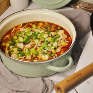 7,把肉跟汤一起倒进装着煮好的素菜的盆子里。撒上葱蒜段,烧一些热油浇上去就可以了。