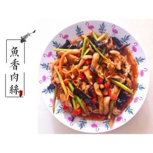 准备好配菜 胡萝卜丝 木耳 蒜苔 然后(滑炒肉丝 热油锅 油要多倒点 倒入里脊肉丝滑炒 断生 然后把肉扒向一边 在剩余的热油里加入一大勺豆瓣酱一大勺剁椒半颗蒜切末加入炒香和配菜一起翻炒两三分钟加入糖醋汁 待汤汁浓稠 收汁即可