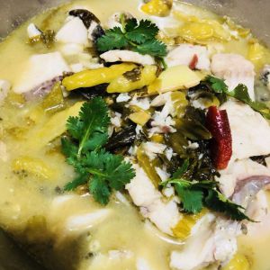 煮开后下入鱼片,关火,倒在食用的大盆子里。