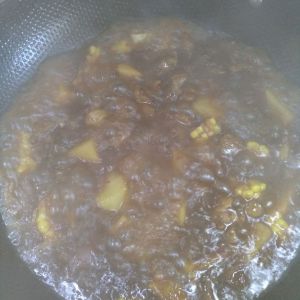 大火烧开水后,转中火炖到汤汁快没了就可以了。记得及时翻炒,千万别糊锅了!