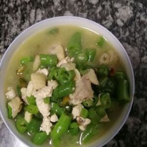 时间差不多后,加入多一点盐(可尝一下),味精,鸡粉,和七星街段。然后再煮一会儿,这时千万不能盖锅盖(否则青椒要变黄),青椒的颜色鲜绿才好看