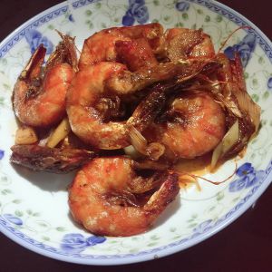 热锅少油,将大虾和调料汁倒入锅中,直至收汁即可!