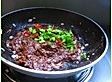 山东大葱切成丝后再切成末,入油锅炒制一会,再加入东北大酱一同炒制。