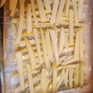 土豆去皮 切条 水煮至五分熟 捞出如图 放冰箱冻成硬邦邦
