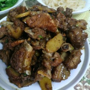 20分钟后,放几片蒜,再用小火炖10分钟,准备收汁出锅,出锅前沿锅边淋一点香醋,撒点熟芝麻,翻匀出锅。
