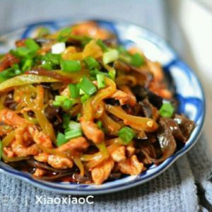翻炒至肉丝完全熟透,起锅装盘撒上适量的葱就可以啦。
