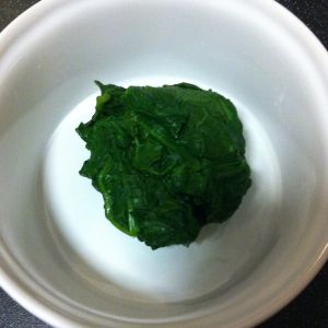 菠菜洗净用热水焯熟(就是水开下菠菜煮到菠菜熟),捞出用凉水浸泡,然后用手挤干水分