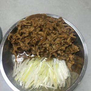 热锅下油,放入面酱,炒至出香味,倒入少许料酒和泡葱的水,煮至大泡。放入肉丝翻炒均匀。