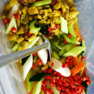 切一点小红辣椒,封口放冰箱冷藏两到三天入味!