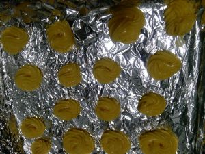 用菊花裱花嘴,挤成大小一样的。不好意思技术不好挤的都不太一样。因为我也是一个初学者。