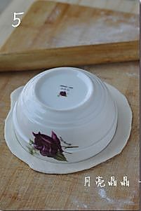 醒好的面团揉匀分成小剂子,取一个搓圆按扁擀成圆形,用一个小碗倒扣在上面,割出圆形。