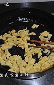两个鸡蛋打散,入油锅炒成碎鸡蛋块