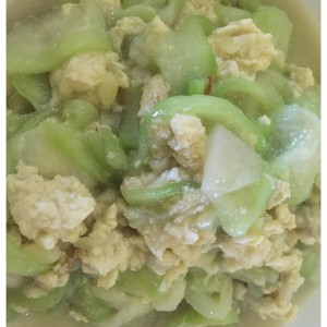 丝瓜7成熟的样子,倒入打散的蛋液,一起炒