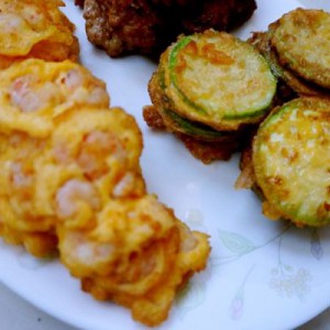 平底锅里倒入油,把裹好鸡蛋液的角瓜片放进去,两面煎至金黄色就行了。火小一点,慢慢煎,如可以用筷子扎角瓜饼的的边缘,如果能轻易扎透,就是熟了。