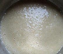 将煮好的绿豆汤凉凉,然后连汤待绿豆分次放入榨汁机中炸碎,倒出来就是