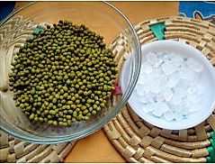 将绿豆洗净,用清水将绿豆泡发至两倍大。时间为一夜。