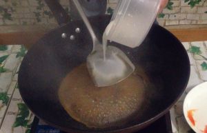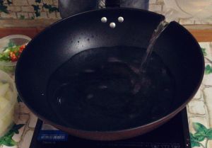 锅中注入约1200毫升清水,烧热