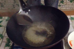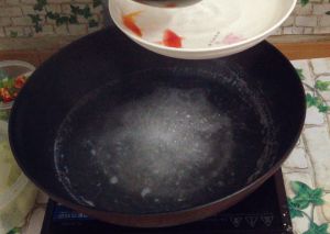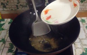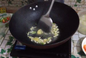 热锅注油,倒入葱段,姜片,蒜末爆香