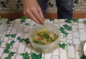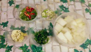 给装盘的冬瓜撒上葱花