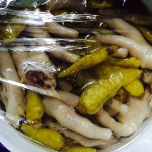 倒入洗净的鸡爪,加入点米酒,有助去油去腥