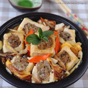 锅中放少许油烧热后放入春笋胡萝卜及香菇片翻少,调入2碗生粉水,勾成厚薄均匀的汤汁,调入鲜味酱油、一点点醋、少许糖,一点鸡精拌匀浇在豆腐煲上即可。