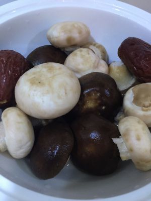 香菇、口蘑清洗干净,将香菇蒂去掉,与大枣放入蒸碗,碗里添少量水,盖上碗盖,上锅蒸。大火至水开后,转小火蒸20分钟,取出晾凉。