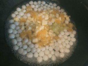 锅内放适量水 水开后下入小圆子 放入冰糖