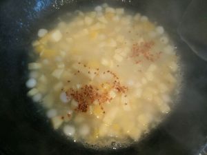 淀粉加水搅拌均匀 倒入锅中勾芡 撒上干桂花即可 很暖很好吃哦~