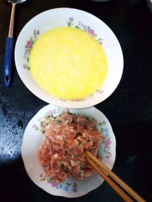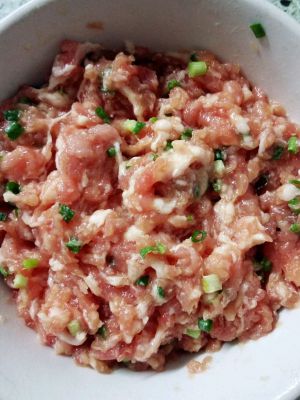 将肉绞成馅儿,加入料酒去腥,依次加入糖 盐 鸡精 ,再将葱花拌入,此时肉馅已然飘香