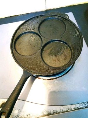 准备,没有模具的可以用大汤勺放在煤气灶上,刷一层油,差不多一勺小汤勺的样子