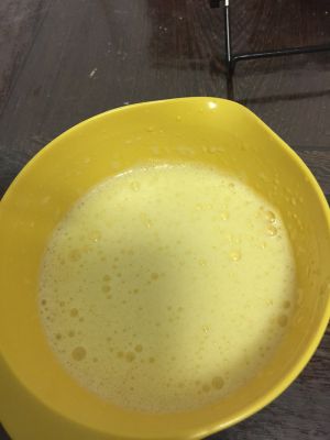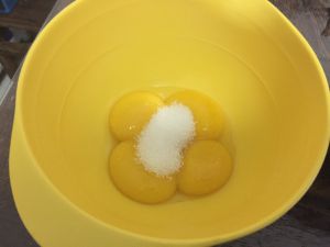 蛋黄加10g糖,用打蛋器打匀