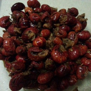 放入小龙虾尾,加啤酒或白酒,如果用白酒就加水,如果用啤酒就不用加水,水要没过小龙虾。然后加生抽,糖,大料,豆蔻,中火焖20分钟,然后加盐改大火翻炒收汤。