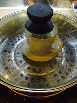这里有个小诀窍,用保鲜膜封住容器口,这样蒸出来的鸡蛋羹就会很光滑啦。