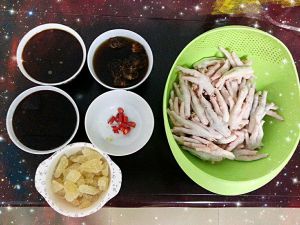 其次,将鸡脚煲熟 。进锅大火煲滚后,小火再煲5分钟。起锅用清水冲净胶质,用冰水浸泡30分钟,晾干水放盆里待用~