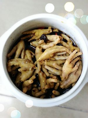 最后,将冷却完全的酱料,倒进装鸡脚的盆里将鸡脚浸没,然后放冰箱冷藏一个晚上,第二天就可以吃了~