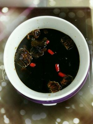 首先将一碗水和冰糖、半只罗汉果放锅里加热直至冰糖全融化,然后加入陈醋、酱油、生姜、辣椒一起煲滚1-2分钟,关火等冷却待用~